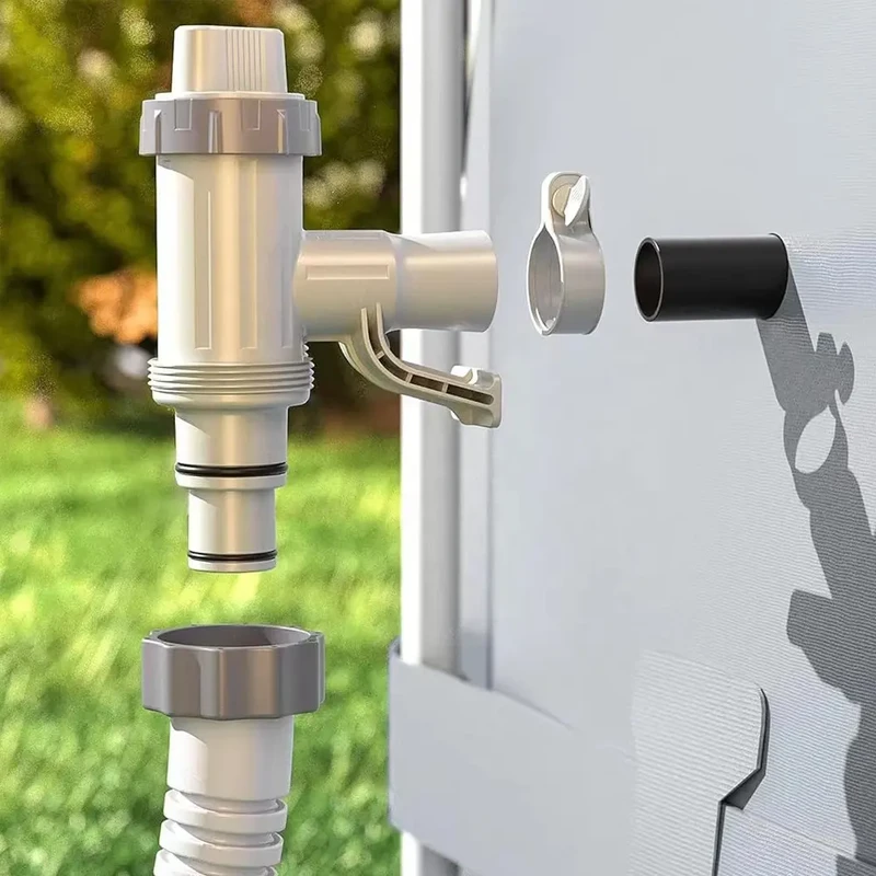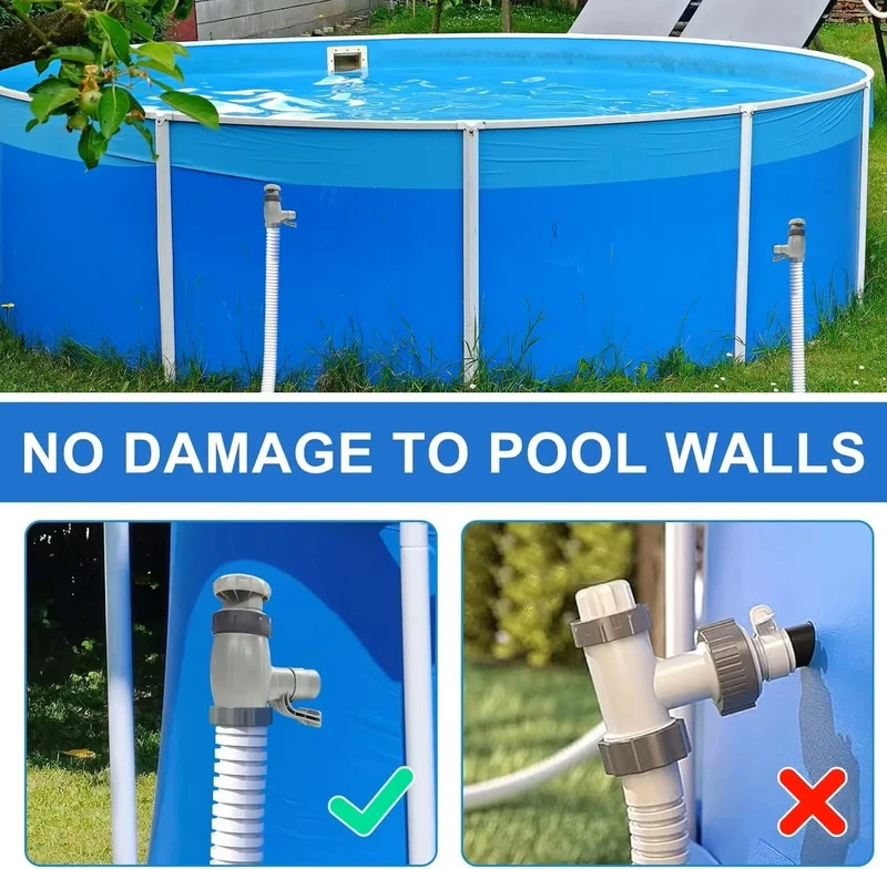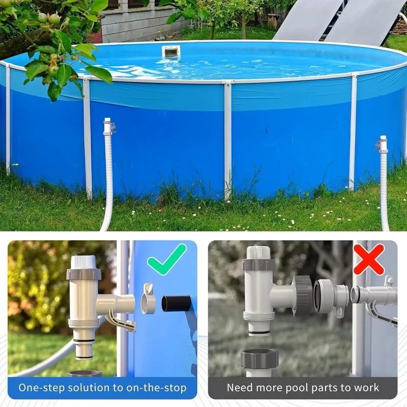ברז מתאם המאפשר לחבר צנרת 38 מ"מ לבריכות עם חיבורי 32 מ"מ
