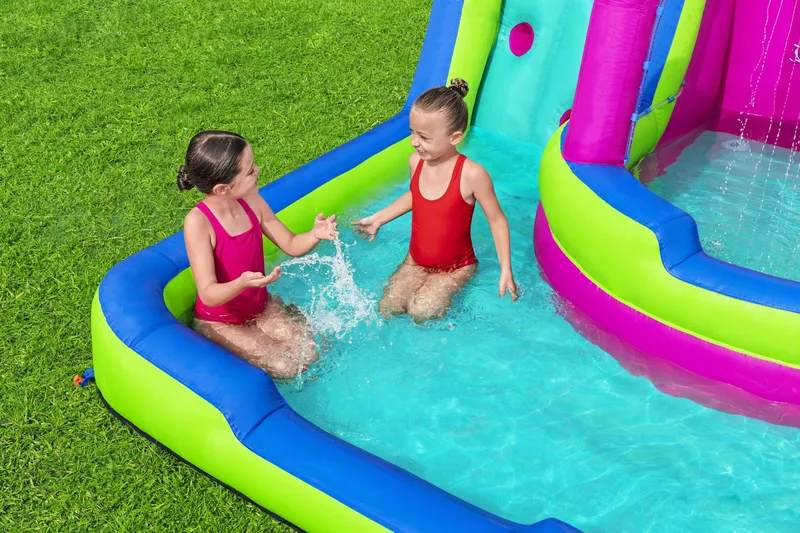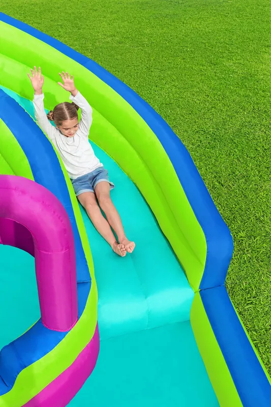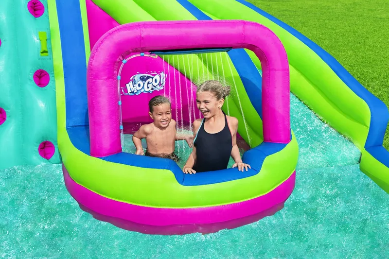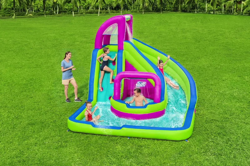 דגם מתנפח מים H2OGO פארק מים דו מסלולי 53434 מבית Bestway מביא את חוויית פארק המים ישירות לחצר האחורית שלכם.