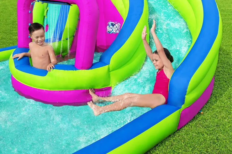 דגם מתנפח מים H2OGO פארק מים דו מסלולי 53434 מבית Bestway מביא את חוויית פארק המים ישירות לחצר האחורית שלכם.
