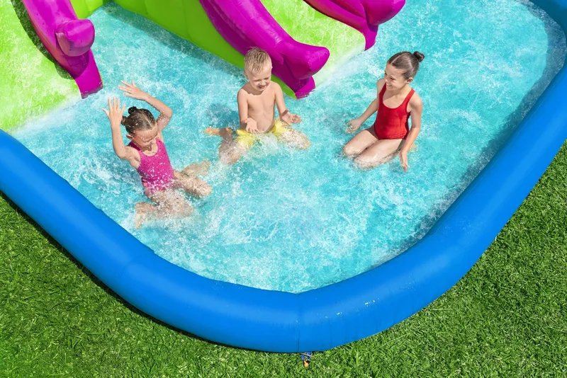 פארק המים המתנפח Bestway H2OGO! 5342R הוא מתקן מים רחב ומרשים בעיצוב תמנון צבעוני, המשלב טיפוס, גלישה ומשחק רטוב בחצר הבית.